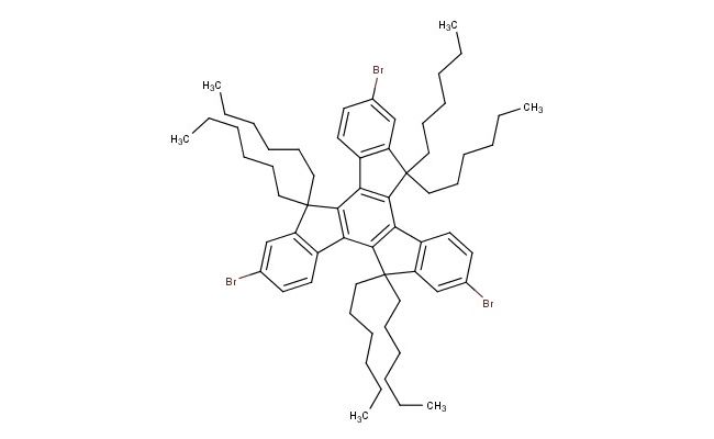 SMILES: CCCCCCC1(CCCCCC)C2=C(C=CC(Br)=C2)C2=C1C1=C(C3=C2C(CCCCCC)(CCCCCC)C2=C3C=CC(Br)=C2)C(CCCCCC)(CCCCCC)C2=C1C=CC(Br)=C2